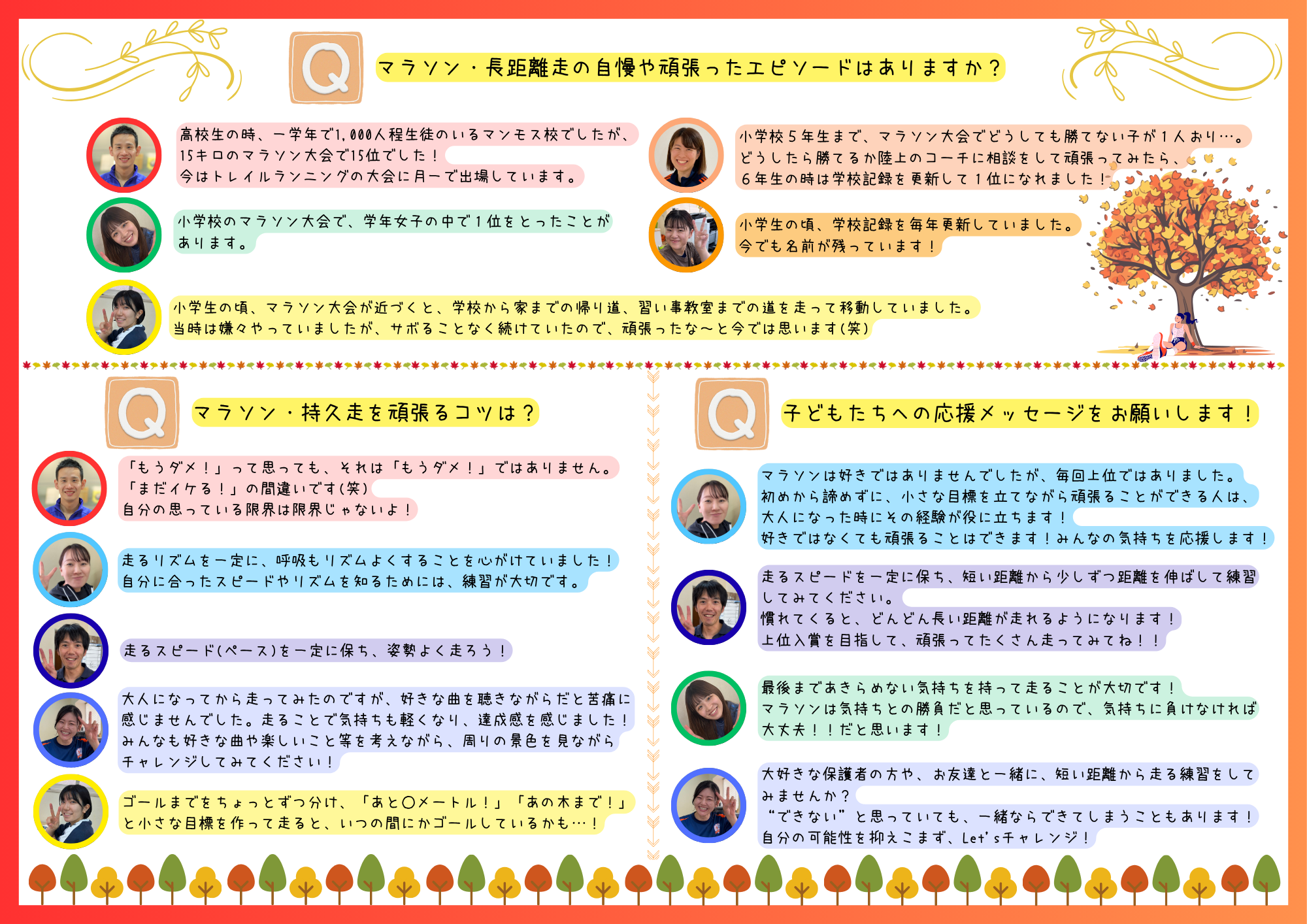 今回は「マラソン」をテーマに、コーチたちからお話を聞いてみました!