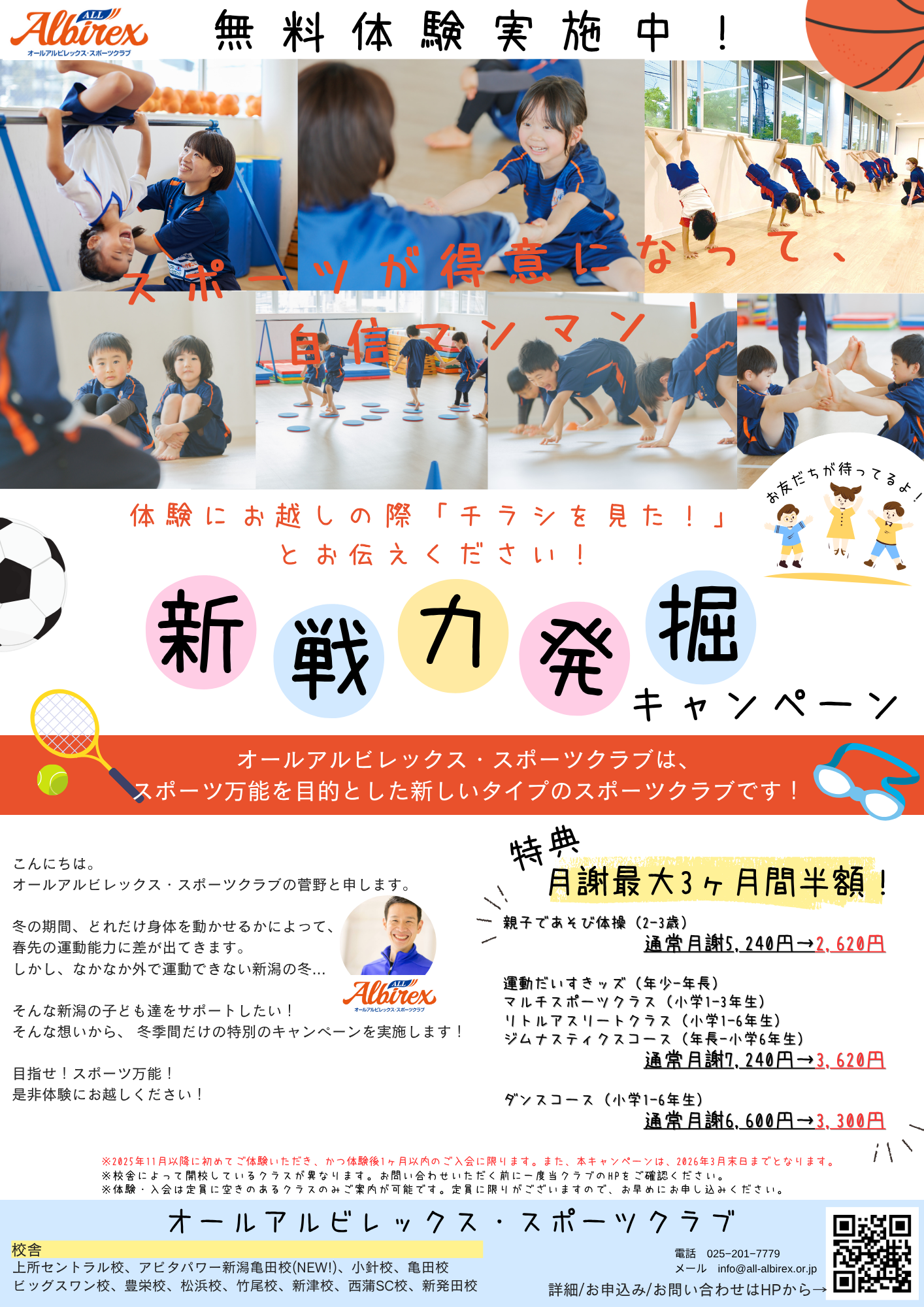 「新戦力発掘キャンペーン」として、月謝最大3ヶ月半額の特典をご用意いたしました!