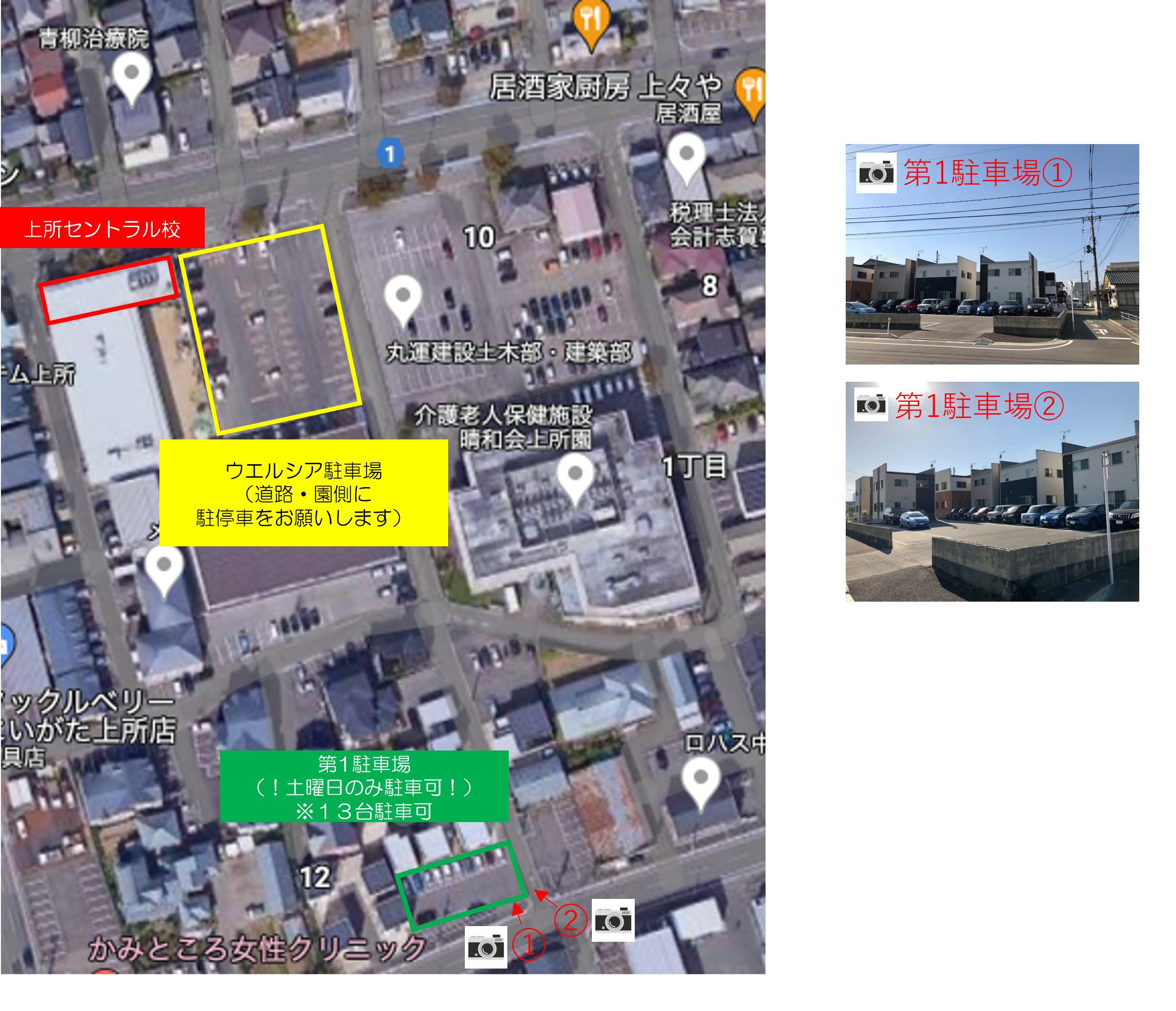※第1駐車場は、こども園職員の駐車場です。園行事等で使用できない場合もございますので、その際はウエルシア駐車場にお停めください。