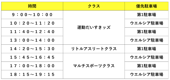 土曜日のウエルシア駐車場は、皆様の車の入れ替えで一時的に混雑し、ウエルシアご利用者様のご迷惑になってしまいます。引き続き、クラス別でウエルシア駐車場と第1駐車場(駐車可能台数:13台)にて、駐停車を分けさせていただきます。